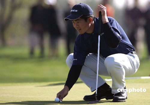 2006中国高尔夫巡回赛北京站的第三轮赛事10月28日在北京天安国际高尔夫球场继续举行,头两轮以负6杆的成绩一路领先的广东名将粱文冲稳扎稳打,最后以总成绩负11杆的优异成绩继续领跑,夺冠在望。中新社发 任晨鸣 摄