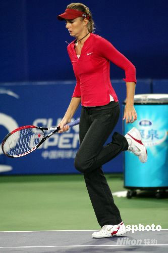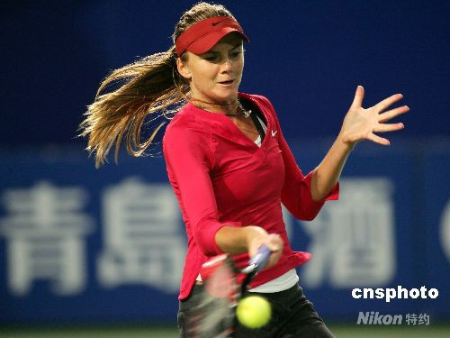 9月24日,中国网球公开赛开始第3日的角逐。在晚间进行的一场女单第二轮比赛中,斯洛伐克美少女汉图楚娃迎战泰国老将塔纳苏甘。现场的温度只有10度,汉图楚娃不堪寒冷,换上了长衣长裤进行比赛,成为了赛场上不多见的一景。最终汉图楚娃以2比1战胜对手,晋级下一轮比赛。中新社发 富田 摄
