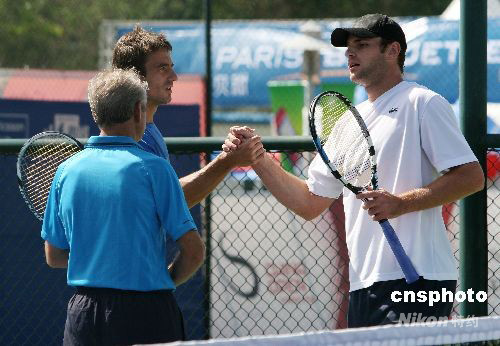 9月25日,中国网球公开赛训练场上,西班牙球星罗布雷多和美国球星罗迪克同场练球,吸引了众多球迷。中新社发 鲁谷 摄