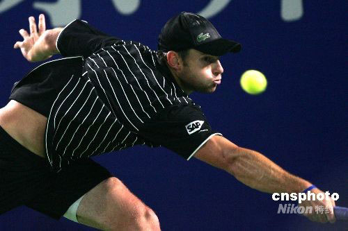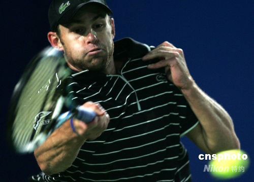 9月27日晚,2008年中国网球公开赛进入第六个比赛日的激烈角逐。在一场男单半决赛争夺中,大赛2号种子美国帅哥罗迪克以6-2、6(4)-7、6-1战胜德国选手法乌,将与以色列黑马D.塞拉展开冠军争夺。中新社发 富田 摄