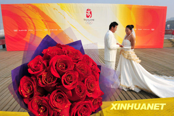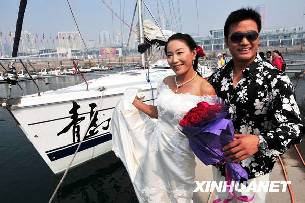 图:奥运帆板冠军殷剑奥帆中心拍婚纱照
