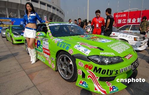 10月15日,2008世界汽车飘移系列赛巡车活动在杭州黄龙体育中心举行。活动安排了来自日本、美国以及国内最顶级的32辆超炫赛车、改装赛车和飘移高手巡游杭城为2008WDS赛事造势,也将飘移旋风带到杭州,带到杭城人民的身边。中新社发 引炜 摄