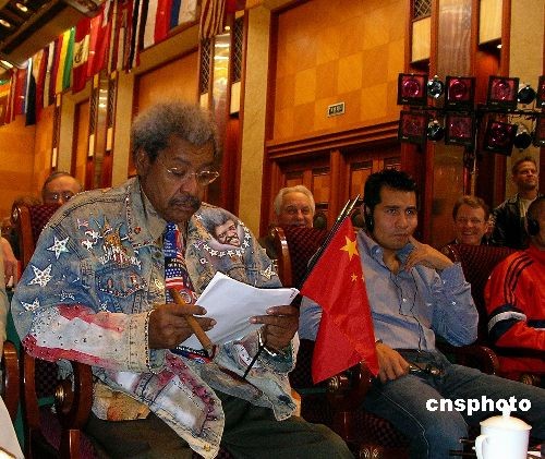 11月3日上午,世界拳击理事会(WBC)第46届年会在成都锦江宾馆开幕,来自35个国家和地区的300多名拳击界人士与会。图为著名拳击推广人唐·金(左)出席年会开幕式。中新社发 杨杰 摄