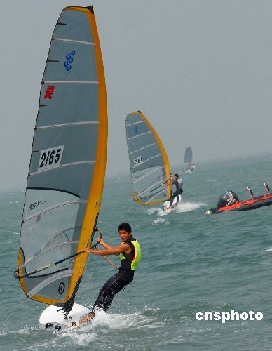 12月14日,17个省市70多名选手参加角逐的2008年全国翻波板锦标赛在海口举行。在为期6天的比赛中,各队选手将争夺男女米斯特拉级、男女RS:X等多个级别的冠军。中新社发 潘华清 摄