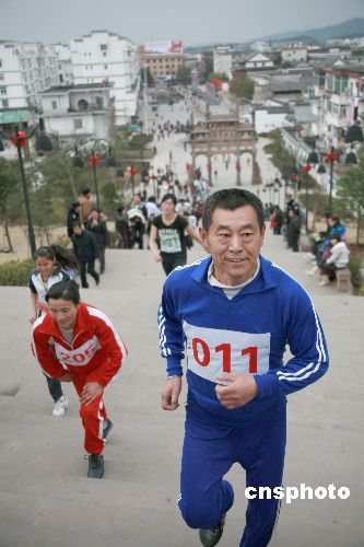 2009年2月2日,安徽休宁举行2009年新春全民健身长跑活动,希望“牛”年奋蹄疾驰。中新社发 方也广德 摄