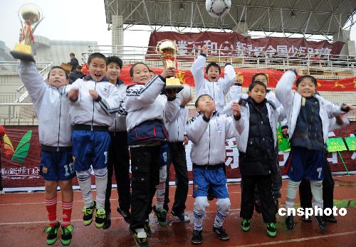 2月2日,由合肥市和平小学承办的第二十四届“新春杯”全国少年足球邀请赛在历时四天后胜利闭幕,来自全国五省七市的共13支少年足球代表队参加了此次少年足球盛会。比赛共评出女子组冠、亚军,男子甲组和乙组前三名,其中,四川达州队获女子组冠军,郑州郑上路小学分获男子甲组和乙组的第一名。据悉,明年的第二十五届“新春杯”全国少年足球邀请赛将在江苏徐州举办。中新社发 解琛 摄