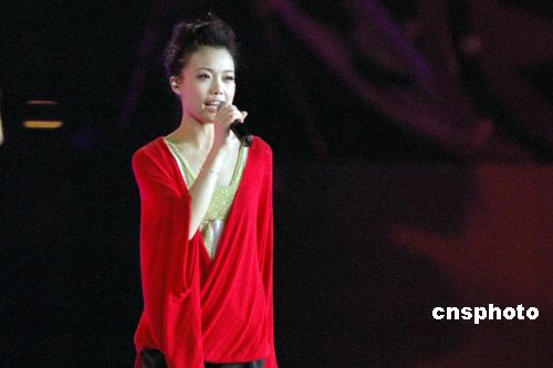 香港当红歌手容祖儿献艺。