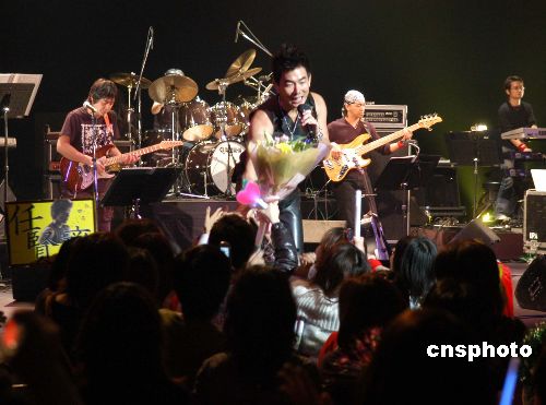 12月8日晚上,台湾明星任贤齐在东京练马文化中心举行“就在老地方”演唱会,受到前来观看的中日近两千多歌迷的追捧。此次演唱会是中国文化节活动之一,由在日华人媒体日中通信社筹办。在演唱会上,任贤齐倾情用中日两种语言演唱了《伤心太平洋》、《心太软》等脍炙人口的老歌。中新社发 滕剑峰 摄