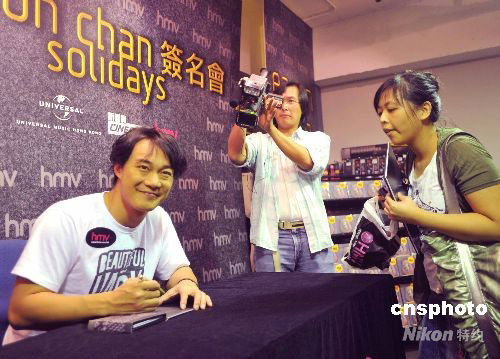 八月二十六日,香港歌星陈奕迅推出新碟《Solidays》,並举行签名会,与“粉丝”近距离接触。中新社发 邓庆乐 摄