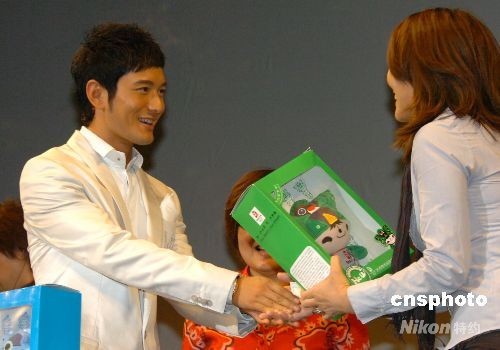 图:黄晓明向日本影迷赠送奥运福娃