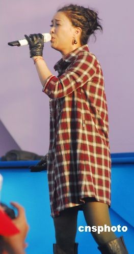 2008年11月16日,那英在第九届中国海南岛欢乐节开幕式上献歌《征服》、《我只喜欢你》,用熟悉的旋律征服了众多歌迷,掀起一阵快乐旋风,并引发现场观众大合唱。那英一身红格子长衣至大腿,以高筒靴、黑手套、网状丝袜,尽现个性与神秘魅力。她说在欢乐节上有自己的许多第一次——第一次到文昌,第一次参加海南欢乐节,第一次在欢乐节上献歌,更是第一次在下午站在海边舞台上演唱。中新社发 善平 摄