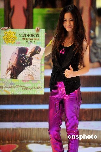 卡通片《名侦探柯南》的原唱者日本乐坛小天后仓木麻衣,二十五日在香港出席商场举行的新碟《24 Xmas time》签唱会。中新社发 谭达明 摄