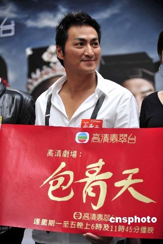 三月一日,何家劲等香港明星在香港一商场出席无线剧集《包青天》宣传活动。中新社发 谭达明 摄