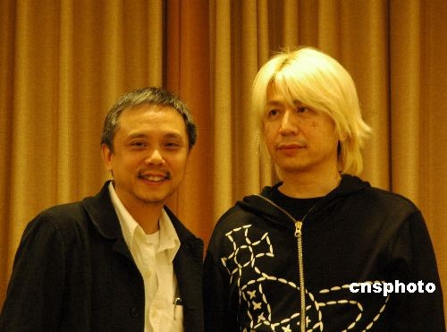 3月20日上午,中国香港导演陈嘉上与日本音乐人藤原育郎一起出席冲绳国际电影节为其举办的记者见面会。藤原育郎是日本吉本兴业公司旗下的著名日本音乐家、钢琴家、指挥家,音乐制作人,曾为大量的电影、电视剧、动画片、游戏完成音乐的工作。陈嘉上称赞其为电影《画皮》创作的音乐凄美感人,非常恰当地传递了电影主人公的感情。中新社发 关妍 摄