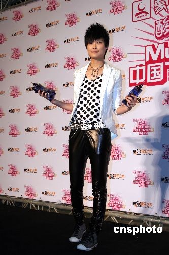 4月26日,中央人民广播电台音乐之声中国TOP排行榜在北京举行。李宇春凭借《少年中国》专辑捧得全能艺人、内地最受欢迎女歌手、年度金曲三项大奖。李宇春连续三年获得此殊荣。中新社发 宇雯 摄