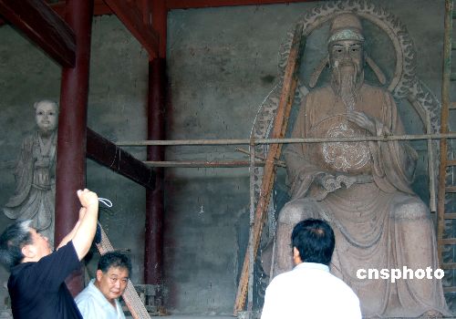 7月10日,在重庆市云阳县十一处地面文物迁建点拍摄的搬迁后的各类文物。三峡库区腹心的云阳县因三峡工程建设被国家文物局和三建委列为异地搬迁保护的地面文物11处、异地复制的文物1处,迁建工作自2001年11月启动,按照搬旧如旧的原则,目前已有9处迁建全部完成,2处已完成搬迁正在进行复建基础工作,确保了三峡工程三期蓄水境内文物的安全。中新社发 周斌 摄