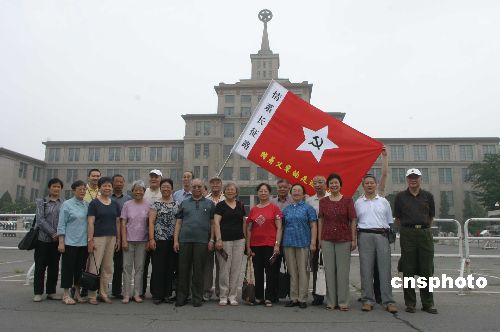 7月19日上午,名为“情系长征路”的新中国开国元勋子女亲属重访长征路活动开始起程,团员们离京前在军事博物馆合影。近三十位老一代革命家、共和国开国元勋、将帅后代当日上午离开北京前往福建三明,将从那里出发重访长征路,体会父辈创业的艰辛。中新社发 田地 摄