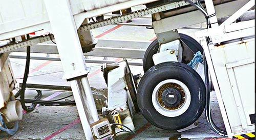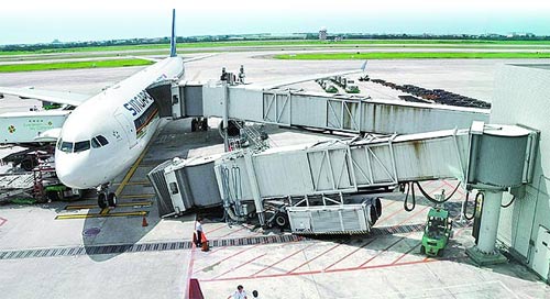 前几年空中巨无霸A380来台时,乘客进出还是透过这座空桥接登机门,专家质疑当时为了因应A380起降,航空站还修改登机门,如果当时有修改过这座空桥,是否造成结构受损;如未修改,“问题更大,表示当初进口就有问题!”