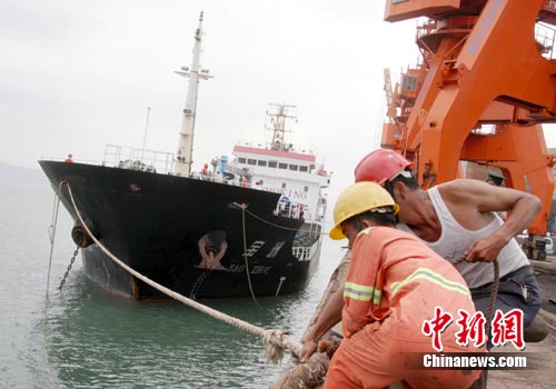 中新网泉州7月15日电(肖咸强 郑伟伟 韩建勋)15日11时许,中国长江航运集团“宝洲”号沥青船,满载4146吨沥青从台湾高雄港直航抵达福建泉州市泉港区肖厝港沙格码头。