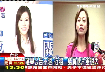 据台湾TVBS报道,年底“直辖市”议员选举,满街都能看到参选人选举广告牌照片,不过有些照片比本人年轻十几岁,如果放在选举公报里,民众质疑会不会有误导之嫌?