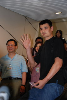 据报道,来台湾参加慈善活动的美国职篮火箭队当家中锋姚明,26日下午搭乘华航班机来台,立刻受到大家热烈包围,桃园县长吴志扬前往机场接机,赠送桃园县农特产品给姚明,希望在台湾期间可以好好品尝一下,姚明也回赠这次活动一件球衣给吴县长。