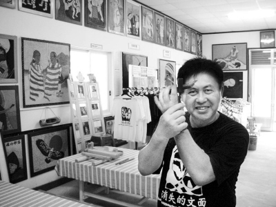 田贵实的工作室100多平方米,除了纹面老人的照片还有用豆子粘贴的纹面画像,内容多以表现泰雅人祖先狩猎、搏斗和织布为主。置身这里,感受到了一股神秘的力量。
