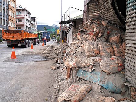 26日凌晨2时,男子林庆铭疑似在转弯时失速,后车斗擦撞到保护民宅的护栏,上百包水泥因离心力太大,瞬间就盖住民宅面对马路的一面墙。民宅的铁卷门、落地窗都被撞开,但42岁的屋主林基全,却显得气定神闲,眉头皱也不皱地看着房子的惨状,淡淡地说:“我习惯了。”