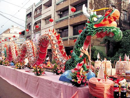 丰盛祭鬼云林县虎尾中元普度由面条组成的巨龙很有看头。