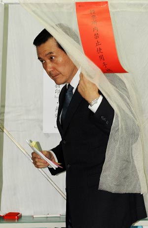 图为马英九在投票 “中央社”图