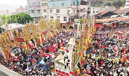 三峡区长福街的清水祖师公庙,迄今已三百多年历史,每逢年初六祖师公圣诞,循例由刘姓、大集姓、陈姓、林姓、中庄集姓、李姓、王姓等七股,轮流杀猪祭祀,今年轮到大集姓,参赛神猪多达十二头,其中詹茂雄饲养的神猪“帅哥”,重达1543台斤(约926公斤)获特等奖。