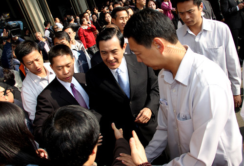 中国国民党建党117周年,国民党主席马英九24日带领党内一级主管前往台北孙中山纪念馆,向孙中山铜像献花致敬。 “中央社”图