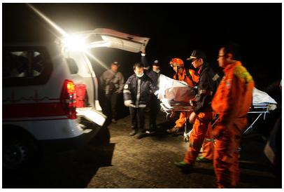 新竹县尖石山区9日发生游览车坠谷意外,遗体陆续送到竹东荣民医院,亲友赶抵认尸,表情难过。(图片来源:台湾“中央社”记者邱俊钦 新竹县摄 )