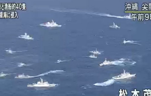 台湾保钓渔船与日本海上保安厅船舰发生冲突的历史场面。翻拍自NHK。图片来源:台湾ETtoday新闻网