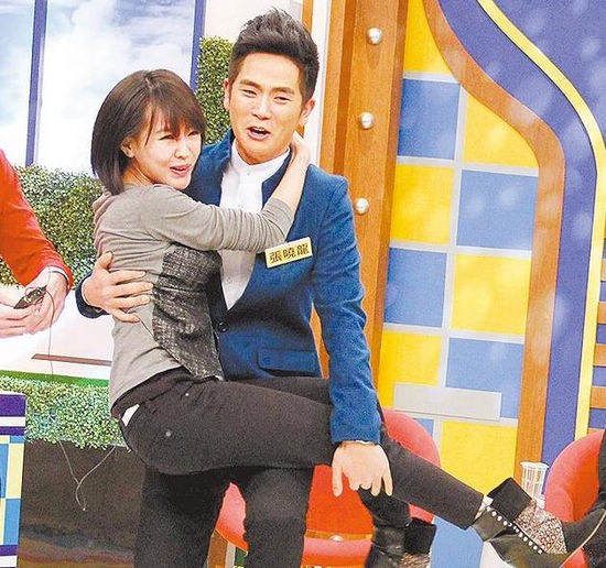 张晓龙录《康熙来了》抱小S展现体力。图片来源:台湾《苹果日报》
