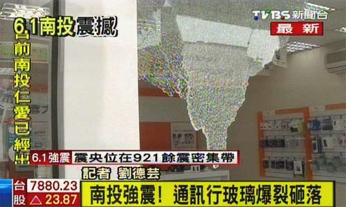 台湾南投今天上午发生里氏规模6.1级地震,地震发生时,民众紧急避难,目前已传出灾情。(本组图片均来自台湾TVBS)