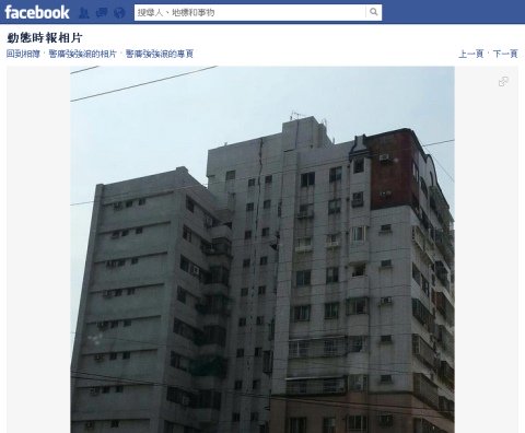 台中大里传出大楼裂开状况,该大楼从13楼楼顶裂开,宛如要从中间撕开。