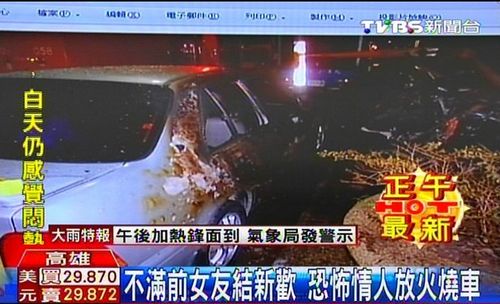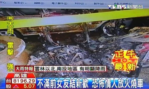 台男子不满前女友结新欢 恐怖情人放火烧车