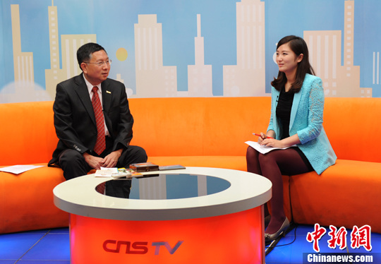 大陆居民赴台游启动至今已满五年,台湾海峡两岸观光旅游协会(台旅会)北京办事处主任杨瑞宗先生(左)15日下午做客中新网视频访谈。