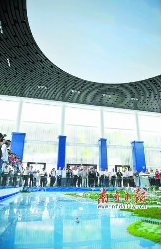 在翠亨新区规划馆的模型前,翠亨新区管委会主任方维廷向新党主席郁慕明、亲民党秘书长秦金生等嘉宾讲解了翠亨新区的总体规划未来的发展方向和目标。客人们认真聆听了介绍,并且就各自关心的问题发表了自己的见解。