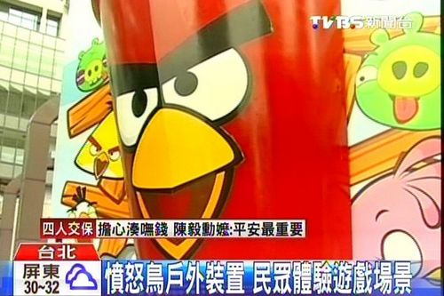 事实上这是便利商店为了新的集点活动,特地设置的大型户外装置,要让喜欢愤怒鸟的民众,可以实际体验愤怒鸟的游戏场景,果然吸引不少人拍照留念。