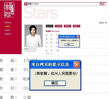 雨神萧敬腾个人网页被黑 上书“杭州人民需要你”