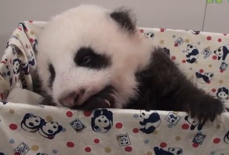 赠台熊猫幼崽肥短小手乱抓 嘴含手掌超可爱(图)