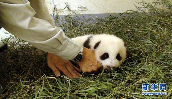 大熊猫“圆仔”换新床 和妈妈分床睡(图)