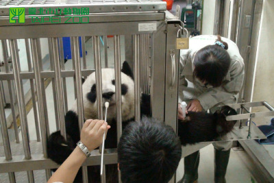 中新网9月9日电 据台湾“今日新闻网”报道,从大陆赠台熊猫的宝宝“圆仔”诞生以来,大陆赠台熊猫“团团”和“圆圆”的训练课程就暂停,9月“团团”“圆圆”跟着小朋友一起开学了。今天(9日)一早“圆圆”跟着工作人员做打针训练,而“团团”则是张嘴训练。