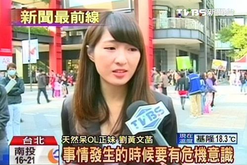 中新网11月18日电 据台湾TVBS网站报道,网络最近爆红的台湾天然呆正妹(美女),因为在一支宣传影片里,跟着演员一起假装昏倒而意外走红,17日她自己号召亲友,在假日晕倒快闪,要唤起大家对突发意外的重视。