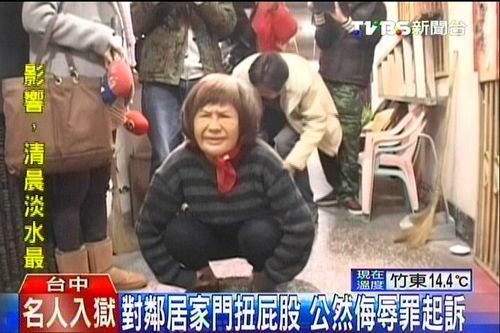 中新网11月29日电 台中市两家住户长年因为噪音问题而产生冲突,其中一方还每天跑到对方家门口,做出扭屁股、拍屁股等挑衅动作,过程全部都被监视器录下,检察官依据画面认定,扭屁股已经涉及公然侮辱,全案提起公诉。