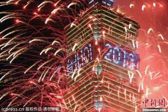 2013年1月1日凌晨零时,作为世界知名的跨年烟火之一,台北101大楼施放以“火鸟”为设计概念、以“舞动未来”为主题的烟火,首次采法式浪漫风格,耗资3000万新台币,持续188秒。加上附近的2013年台北跨年晚会,吸引了逾80万民众和游客,跟着璀璨烟火秀一起迎来新的一年。图片来源:东方IC 版权作品 请勿转载