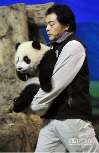 参与互动(0) 台北市立动物园4日首度开放媒体拍摄圆仔,保育员抱著圆仔出场亮相。 图片来源:台湾《中时电子报》