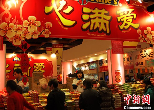 1月21日,北方寒流笼罩台湾,台北世界贸易中心开办的年货集市一派红红火火。贾国荣 摄