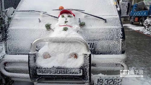 台湾宜兰太平山目前地面积雪厚达1厘米,树梢也悬挂白雪,银白色世界宛如北国风光。(来自台媒)